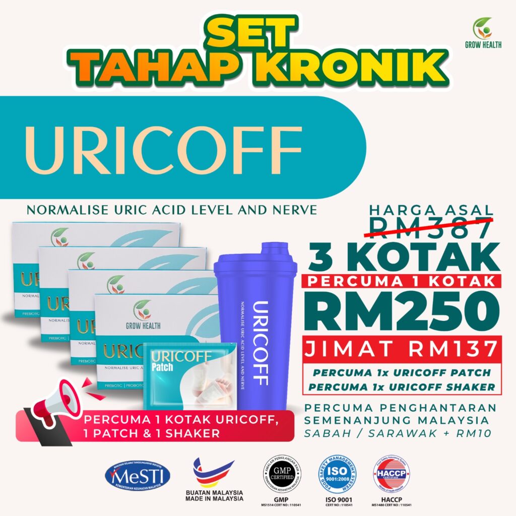 Tidak! Ubat Gout URICOFF dikeluarkan dari kilang yang mempunyai SIJIL dari KKM dan kementerian